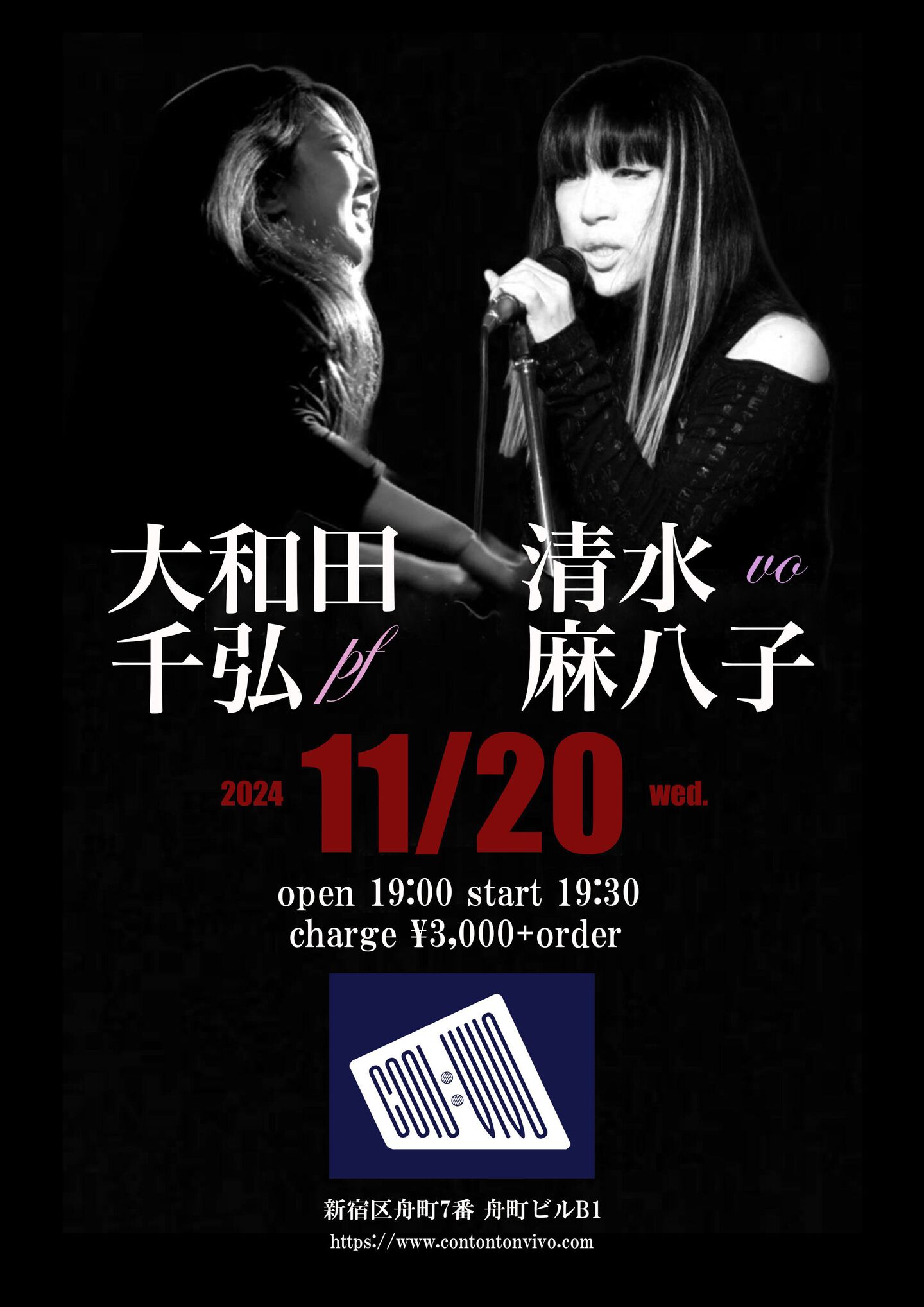 開場:19:30 開演:20:00 一般¥3,000 学生¥2,500 (要1drink 1オーダー)