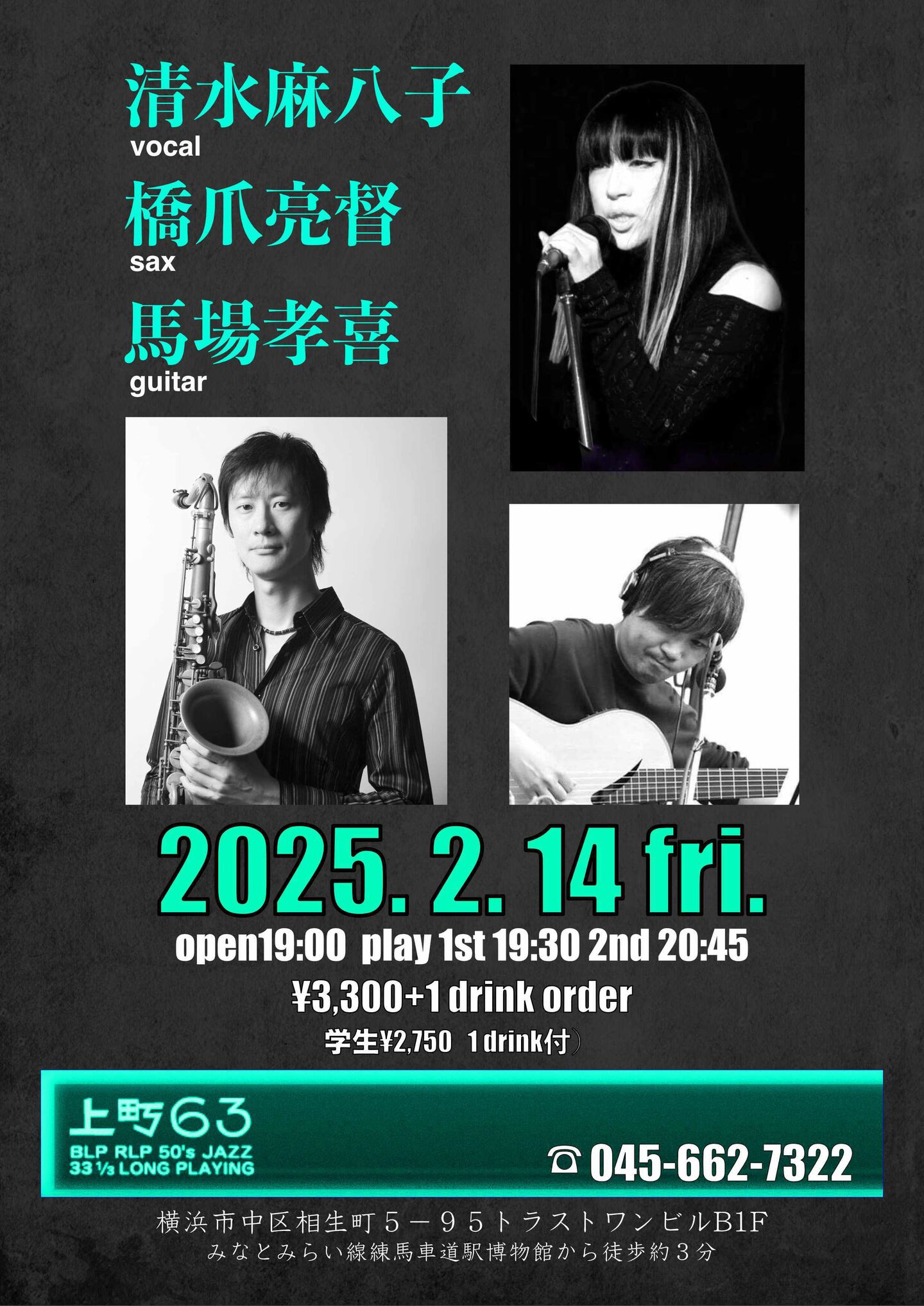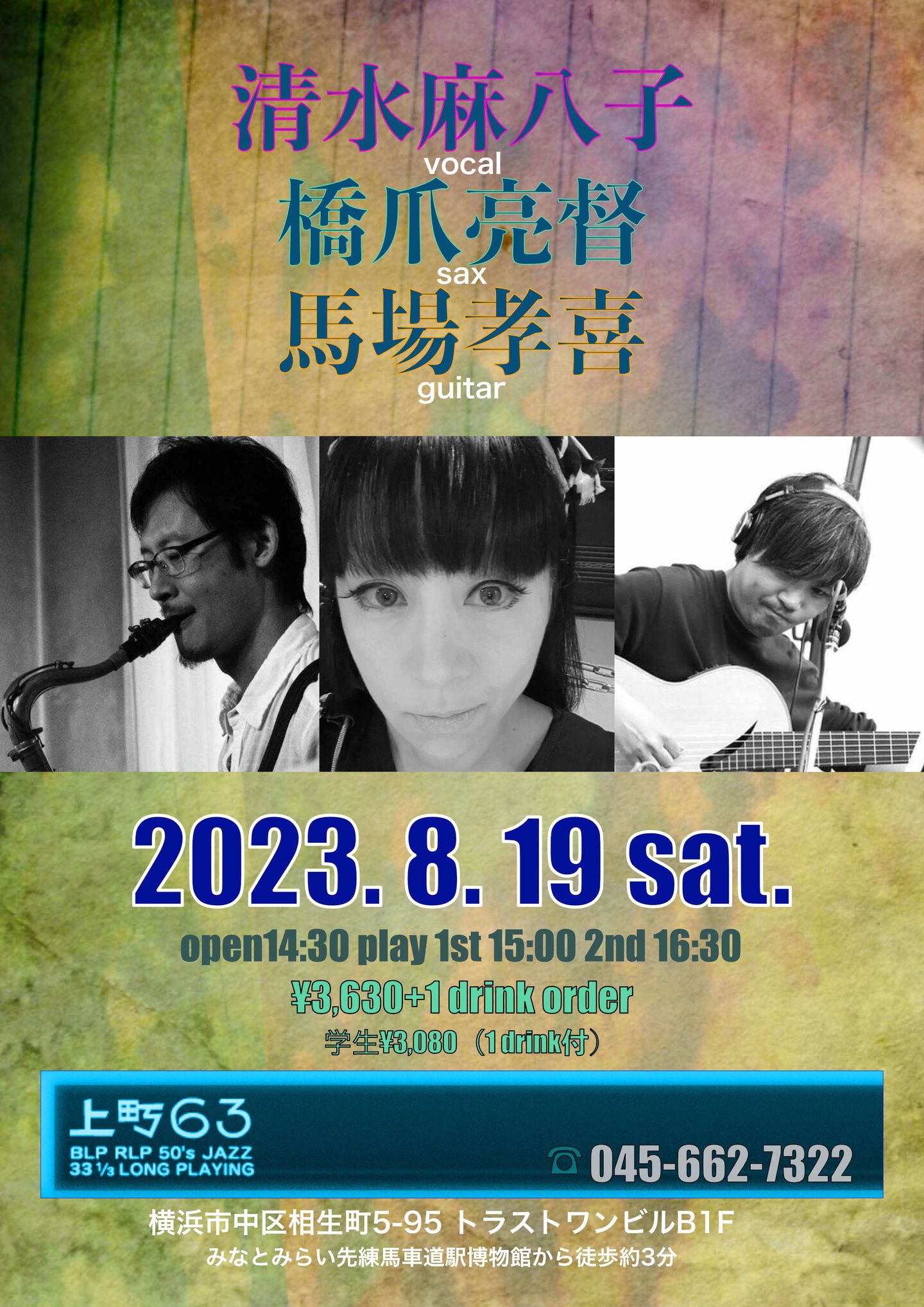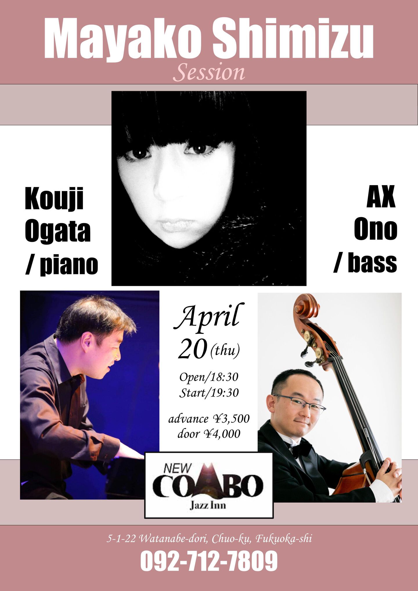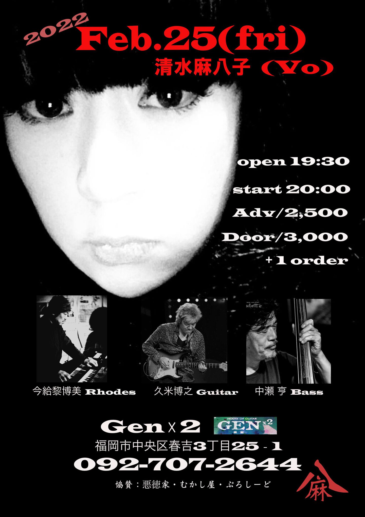 開場:19:30 開演:20:00 一般¥3,000 学生¥2,500 (要1drink 1オーダー)