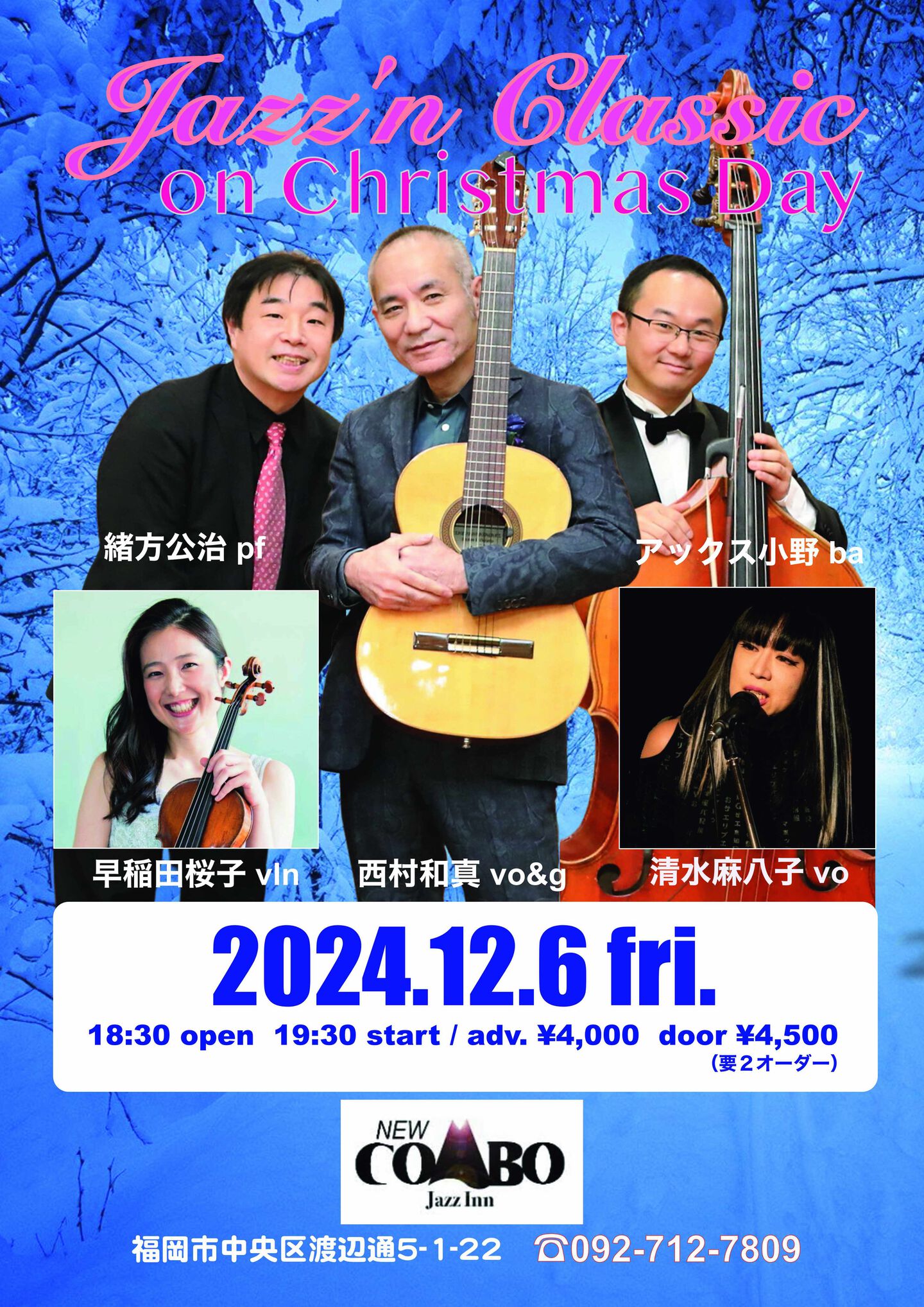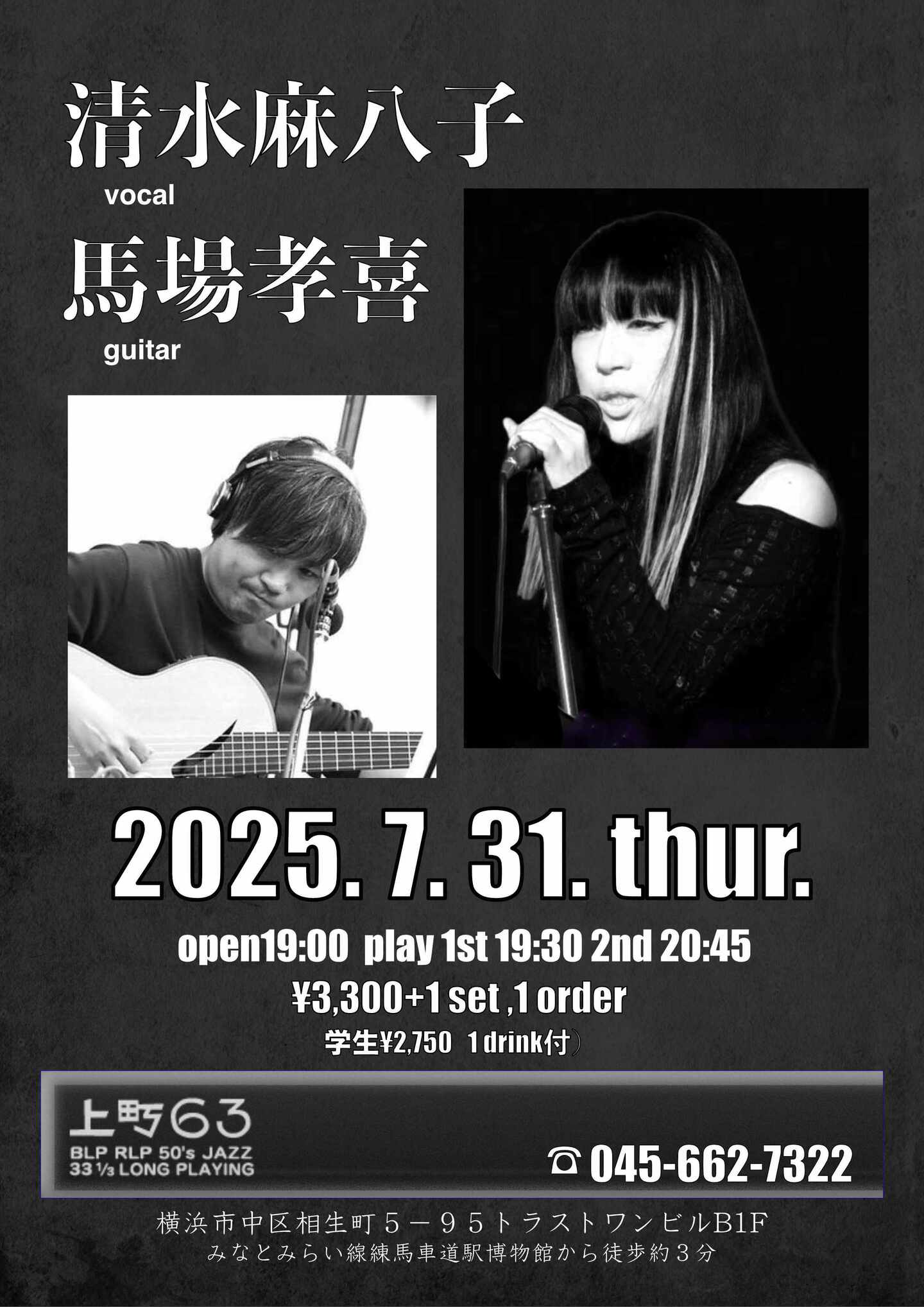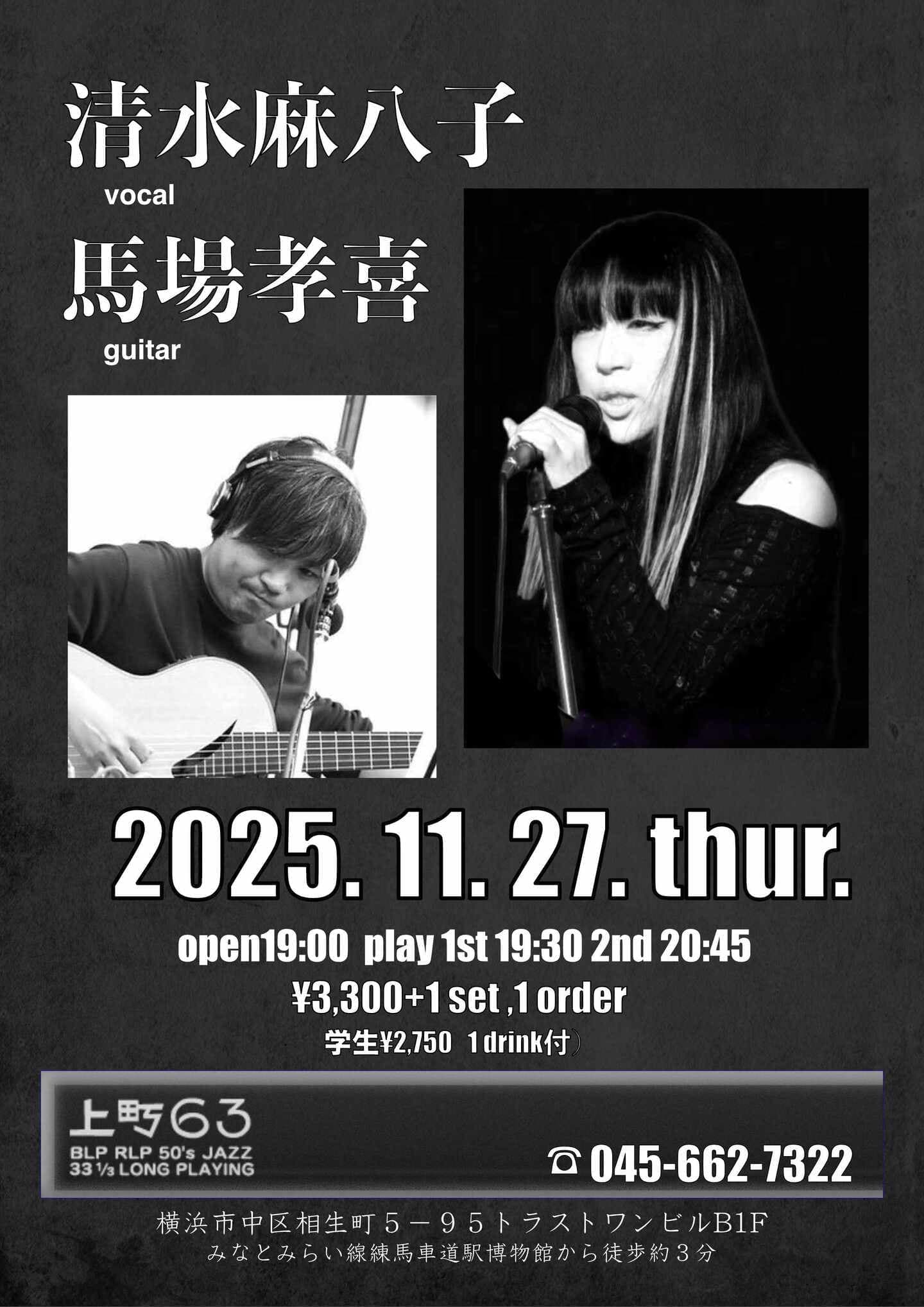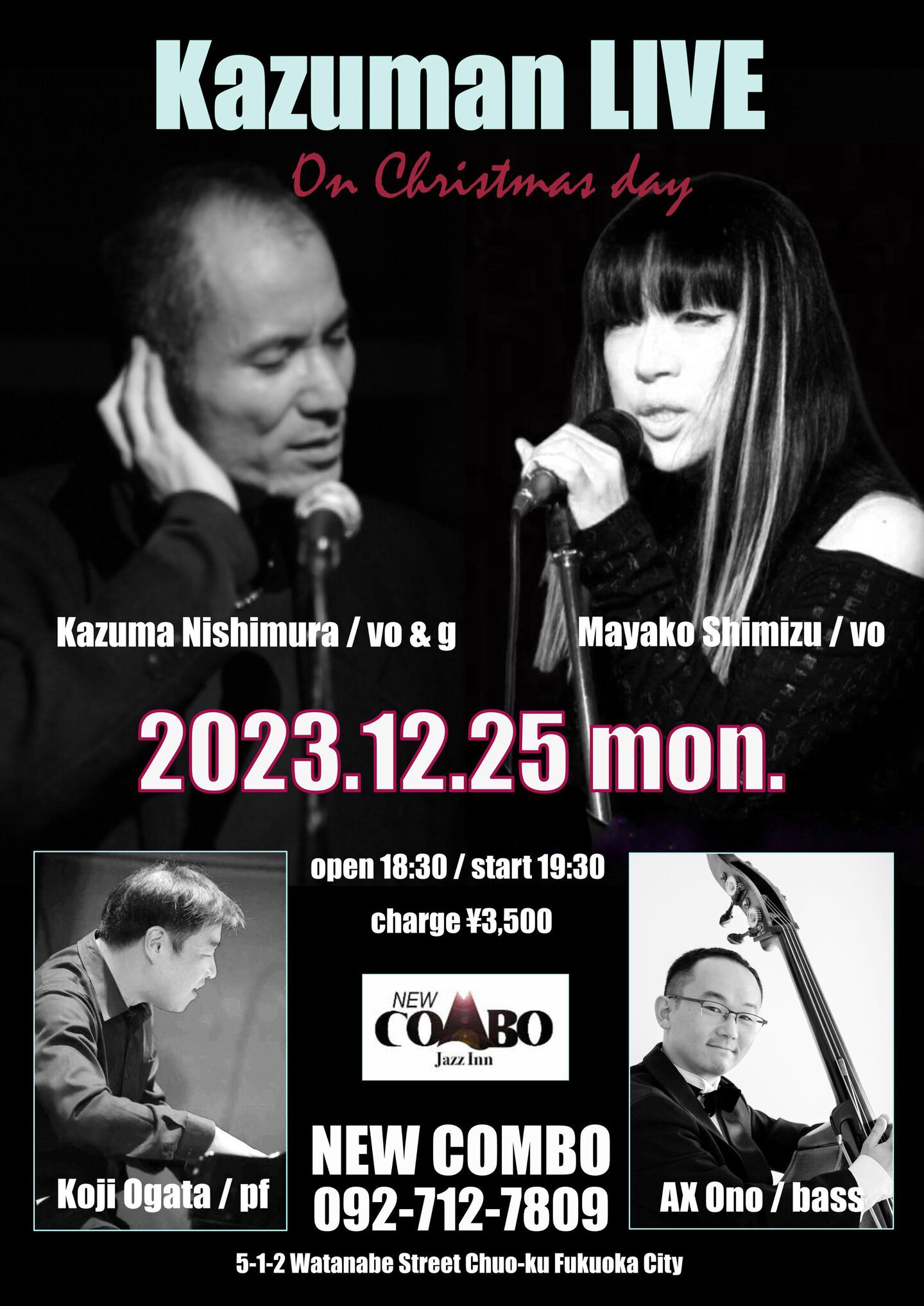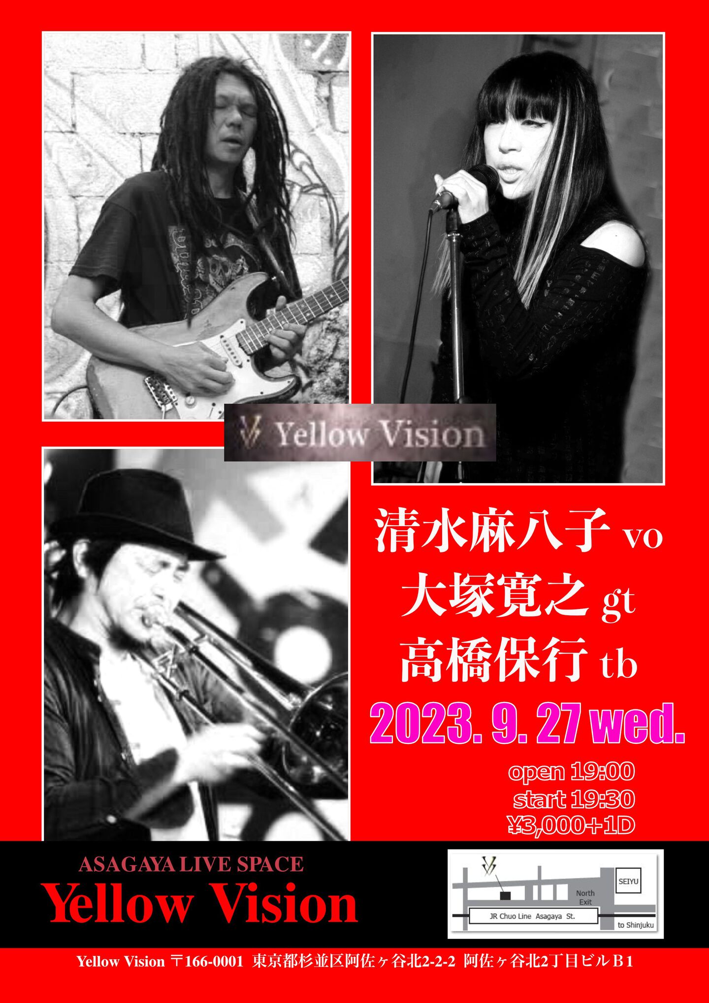 開場:19:30 開演:20:00 一般¥3,000 学生¥2,500 (要1drink 1オーダー)