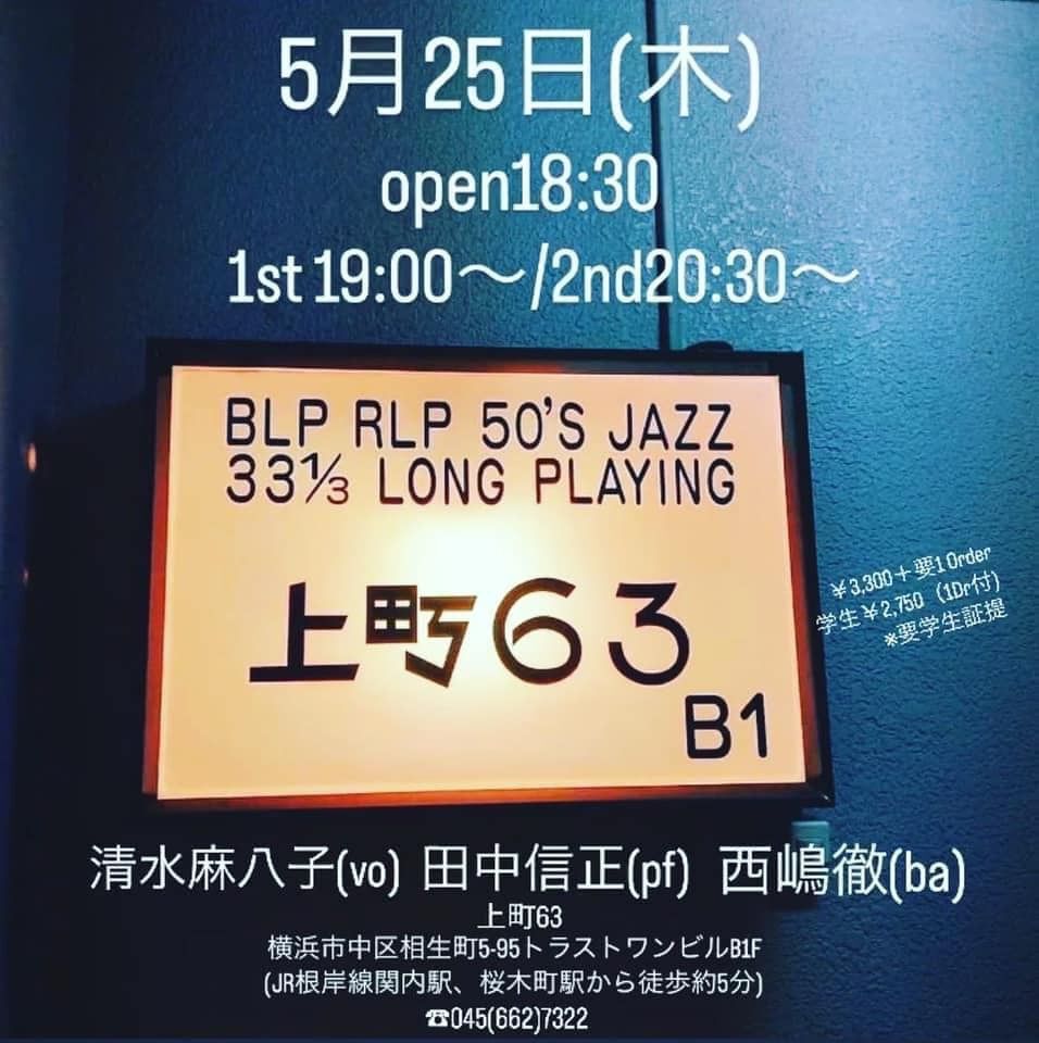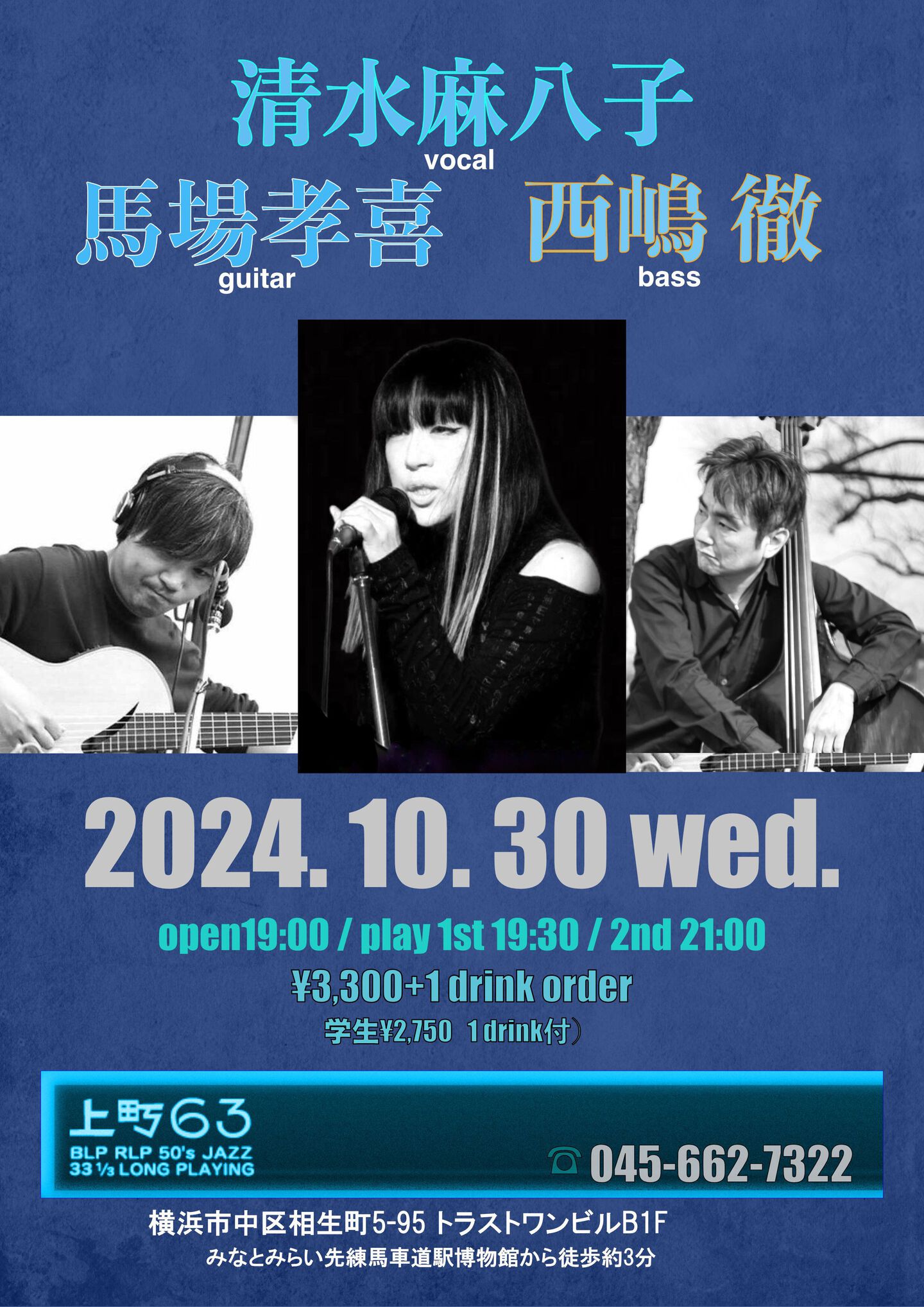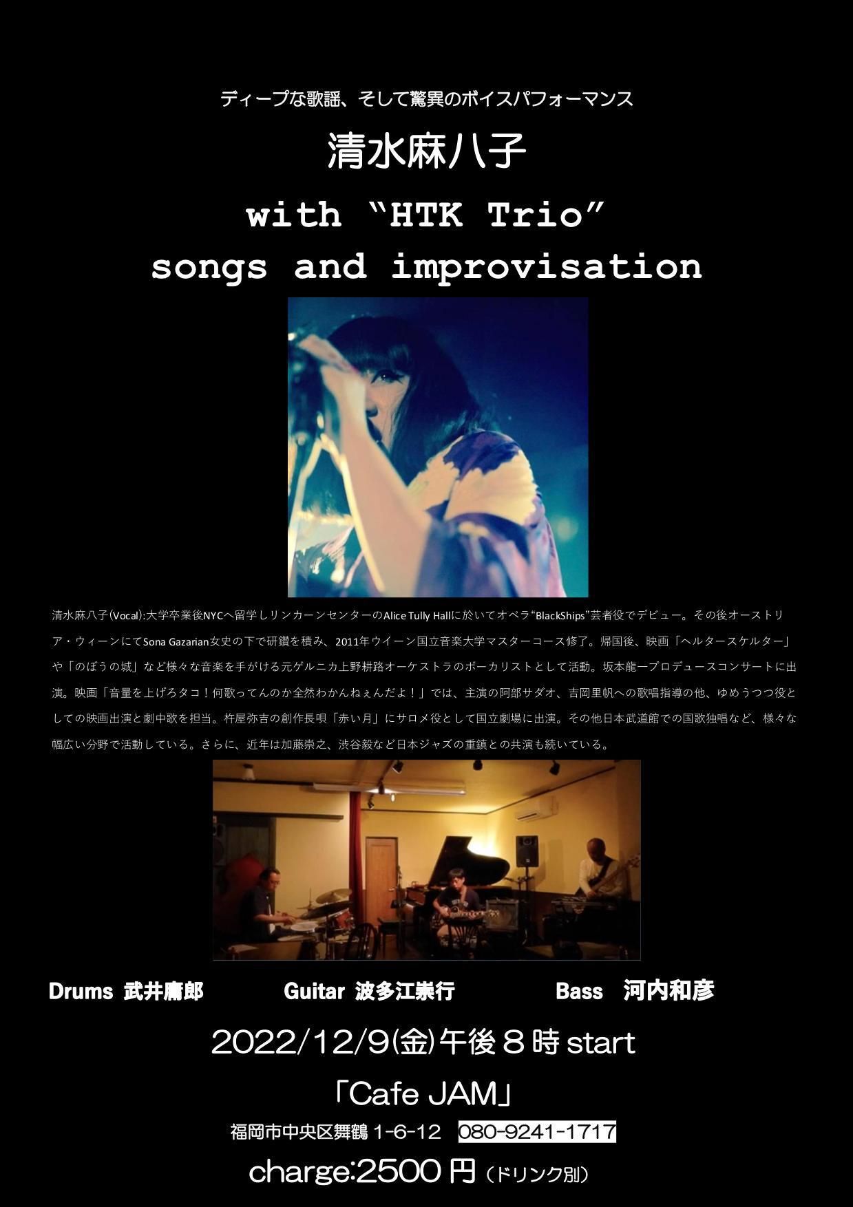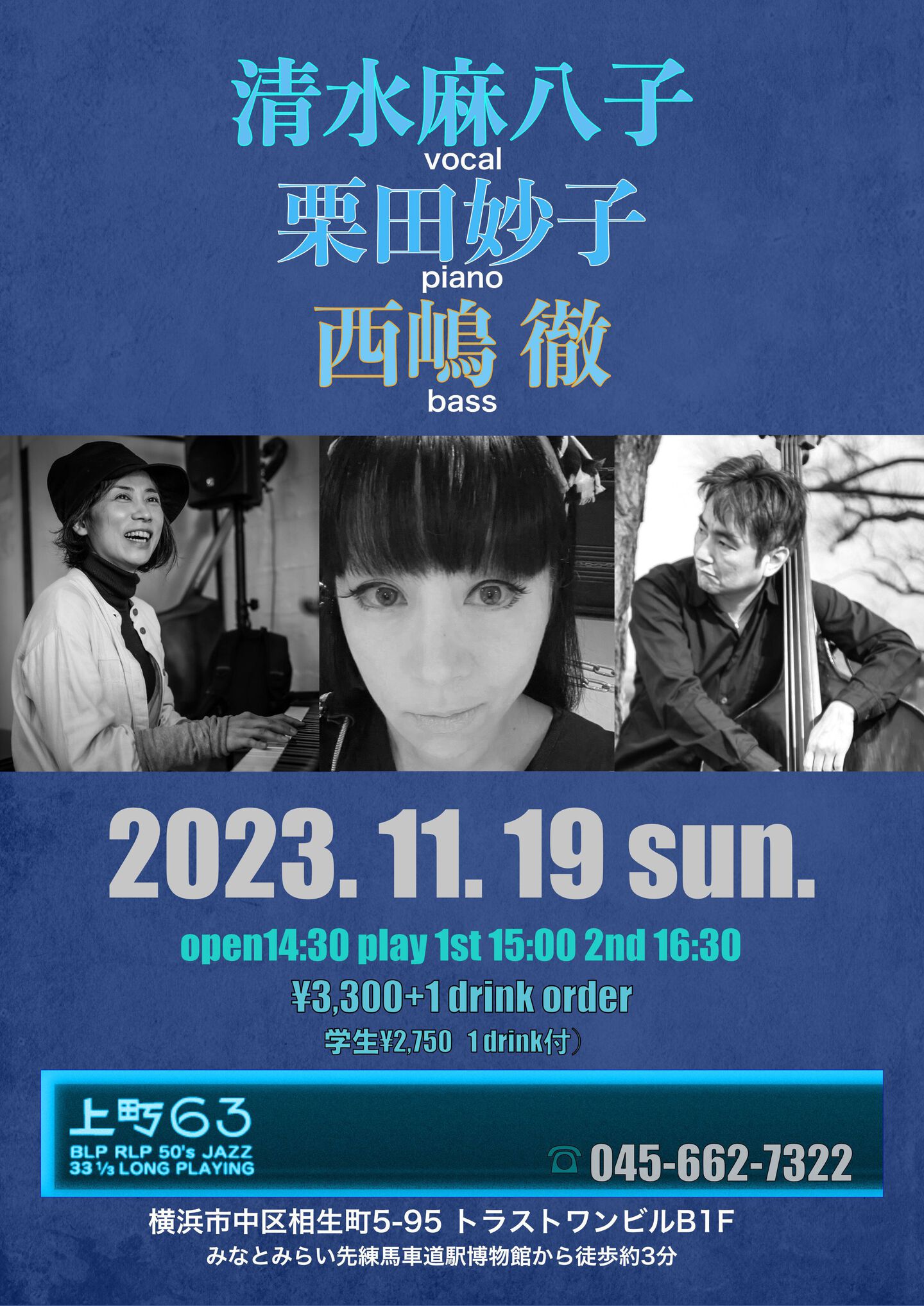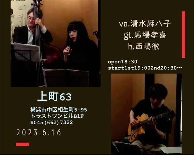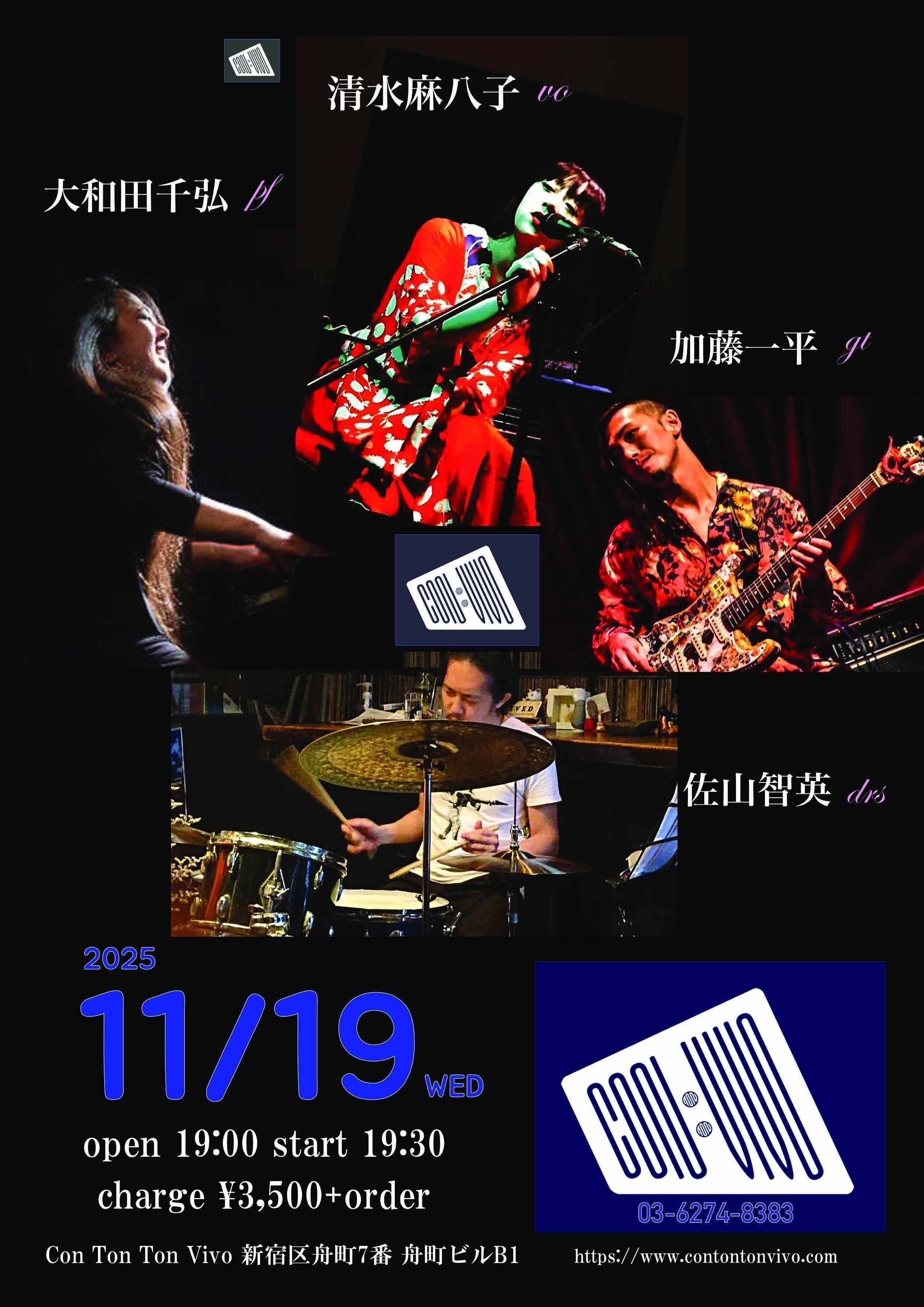 清水麻八子(vocal) 海掘弘太(piano) 古木佳佑(bass)