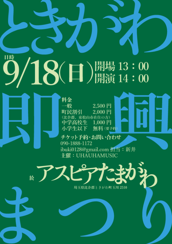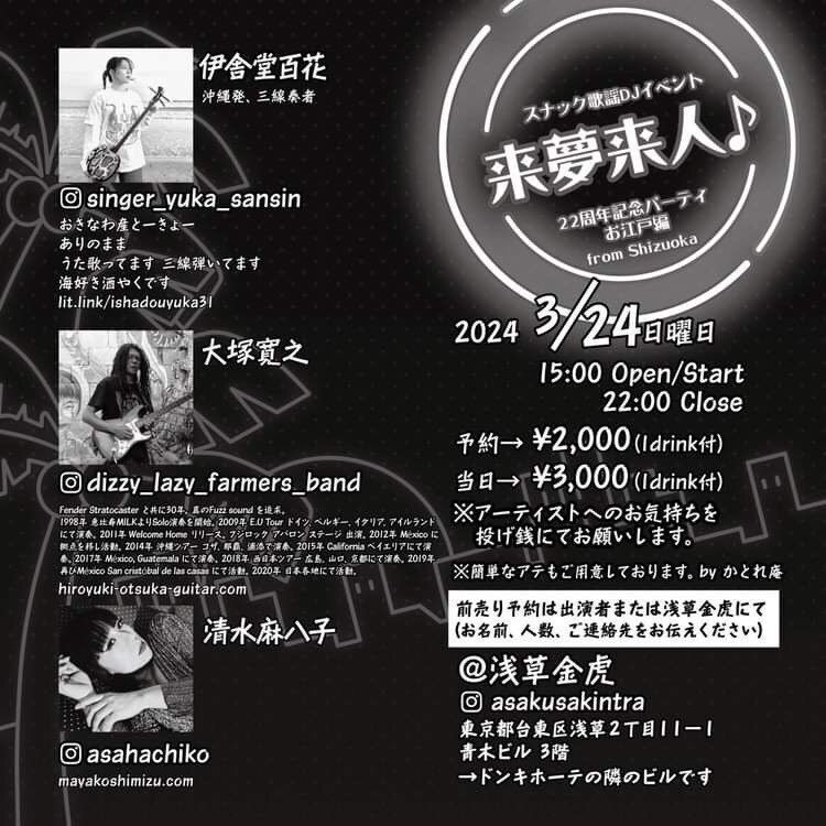 開場:19:00 開演:20:00 Charge¥2,500 (要1drink 1オーダー)