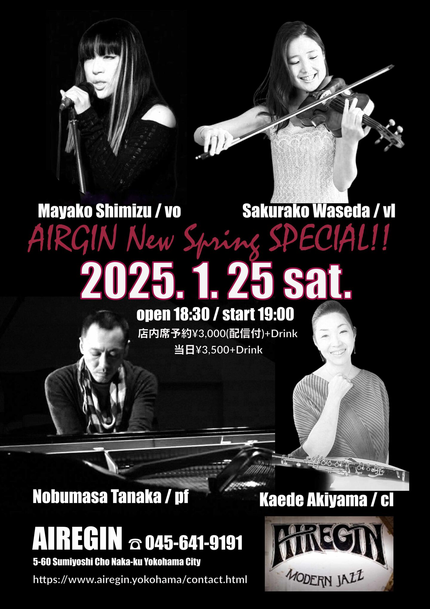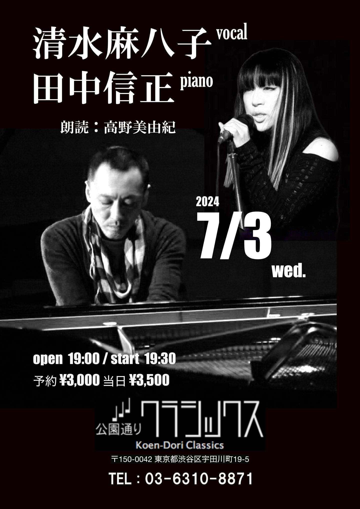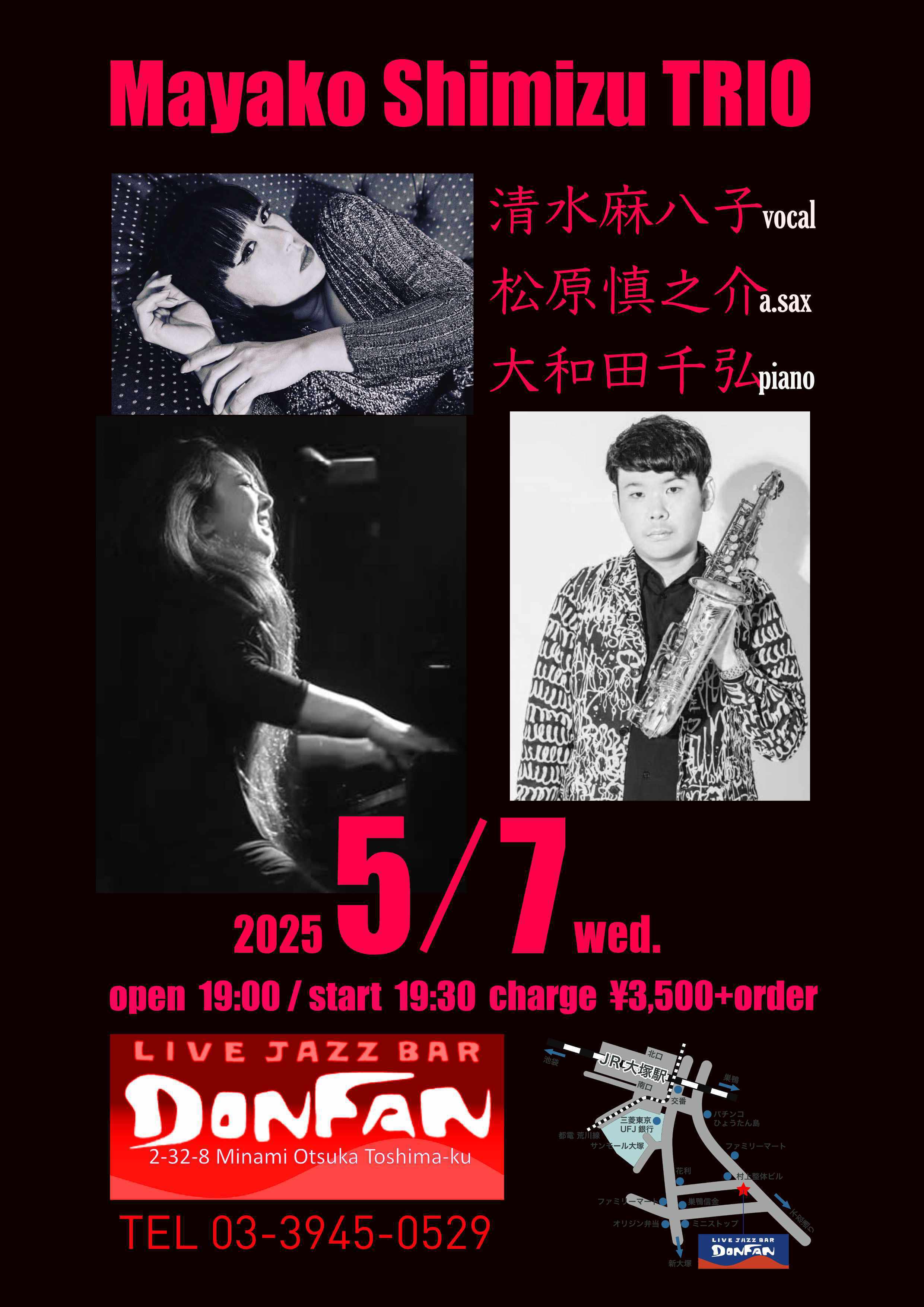 開場:19:00 開演:20:00 前売予約¥3,000 当日¥3,500 (要1drink 1オーダー)