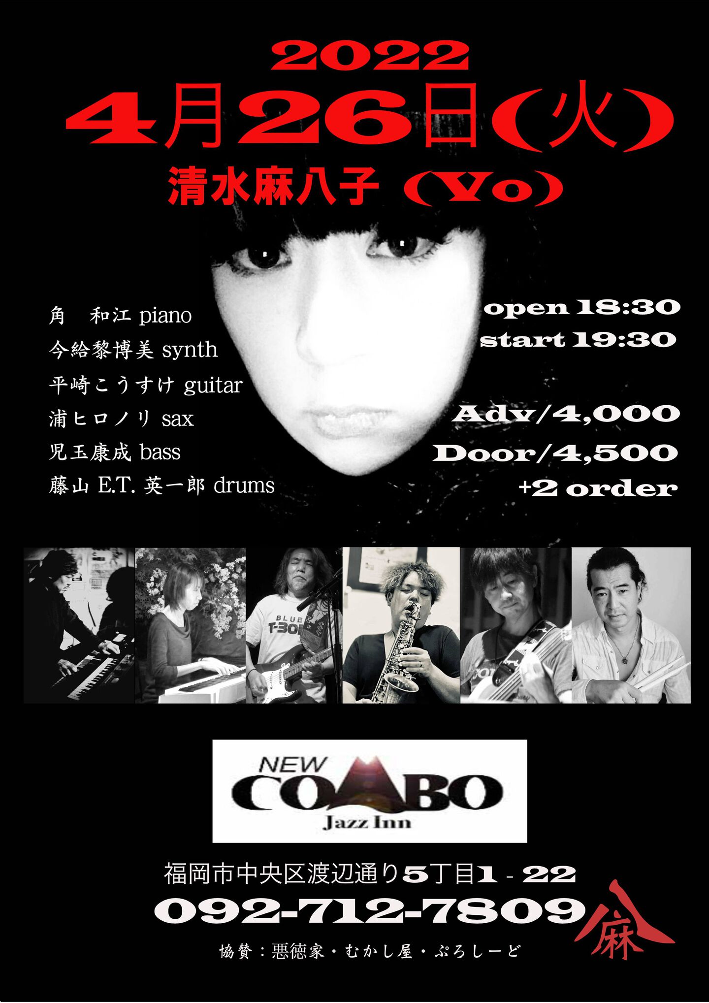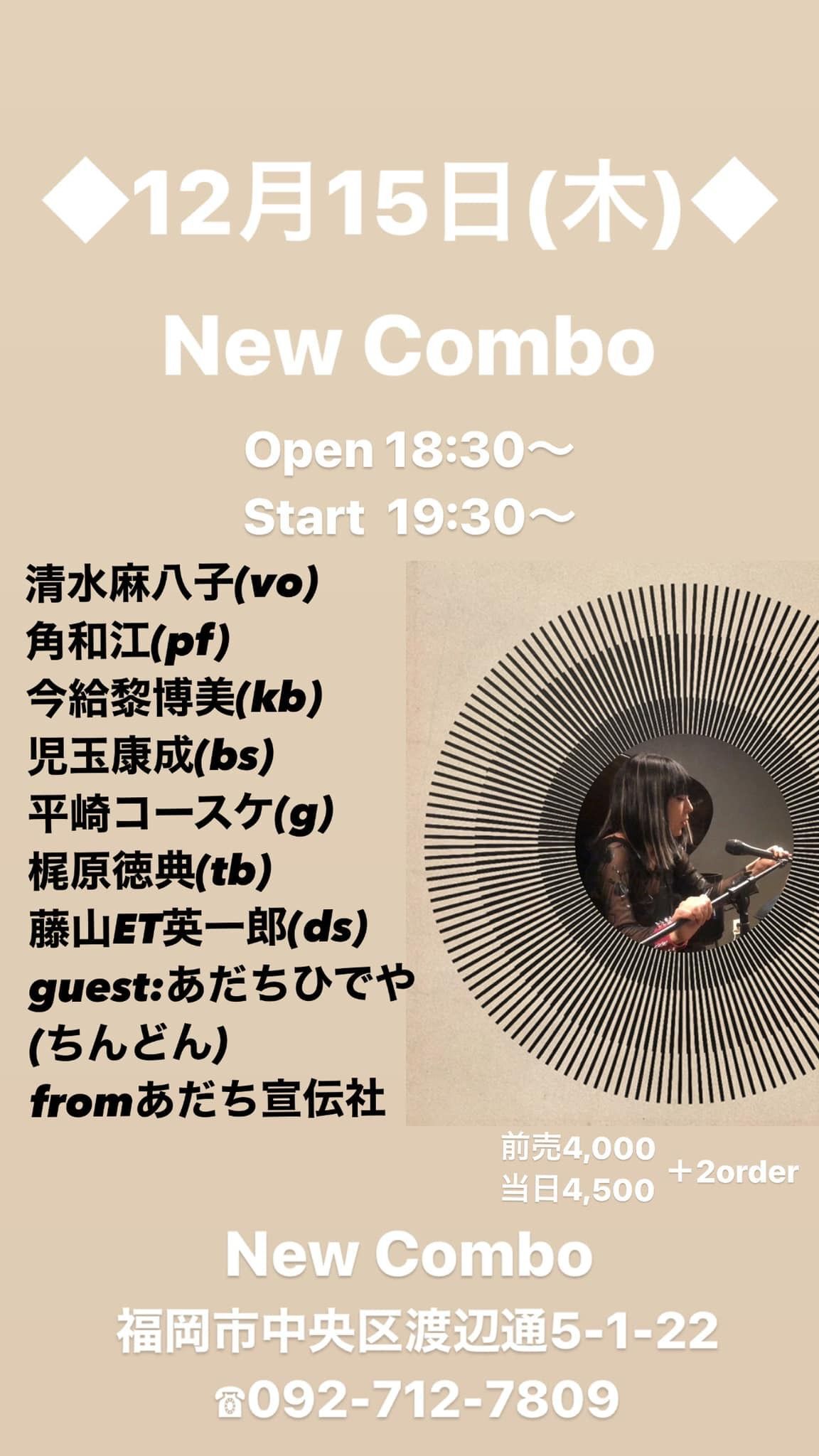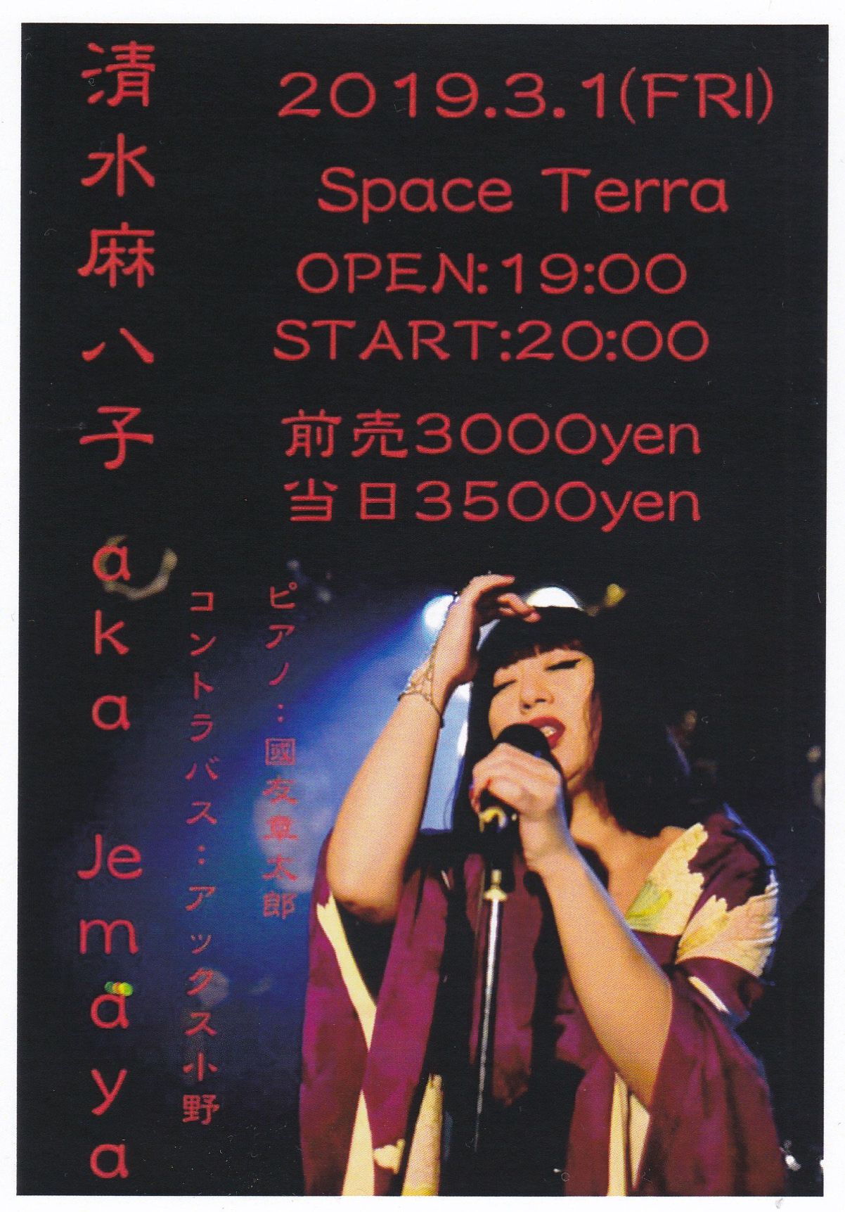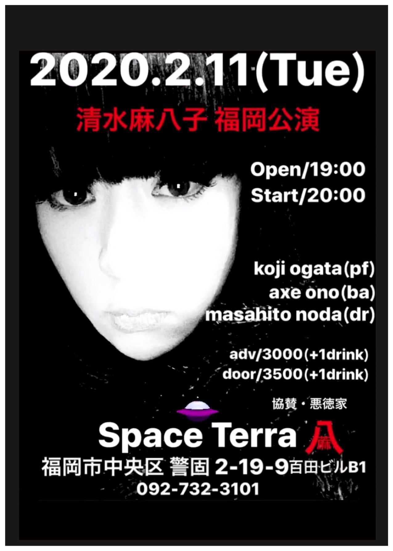 開場:19:00 開演:20:00 前売¥3,000 当日¥3,500 (要1drink 1オーダー)
