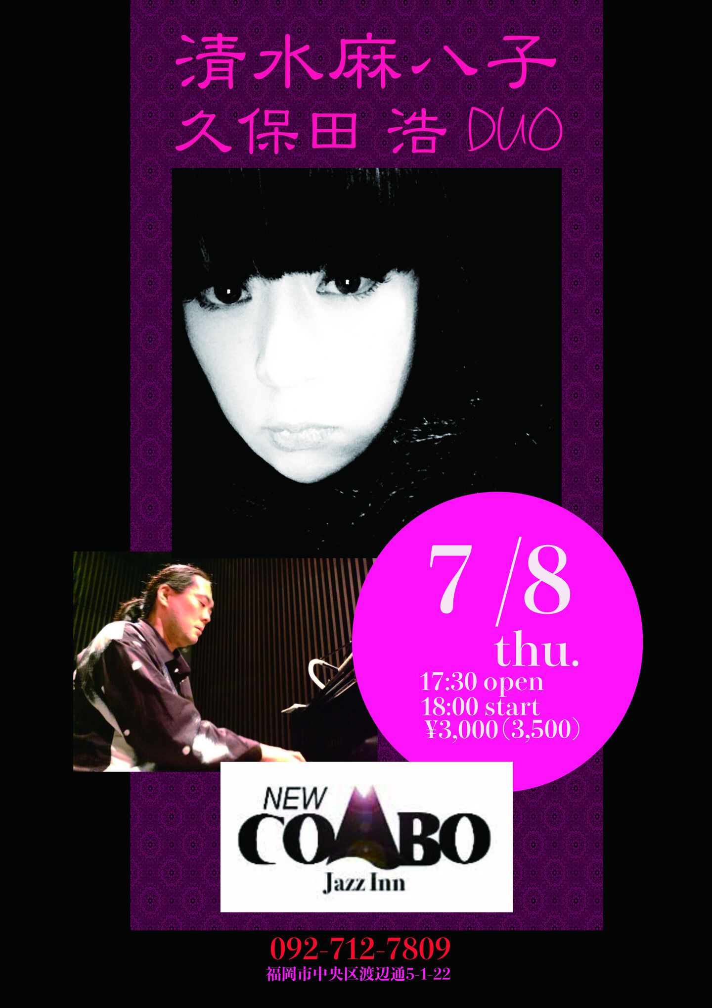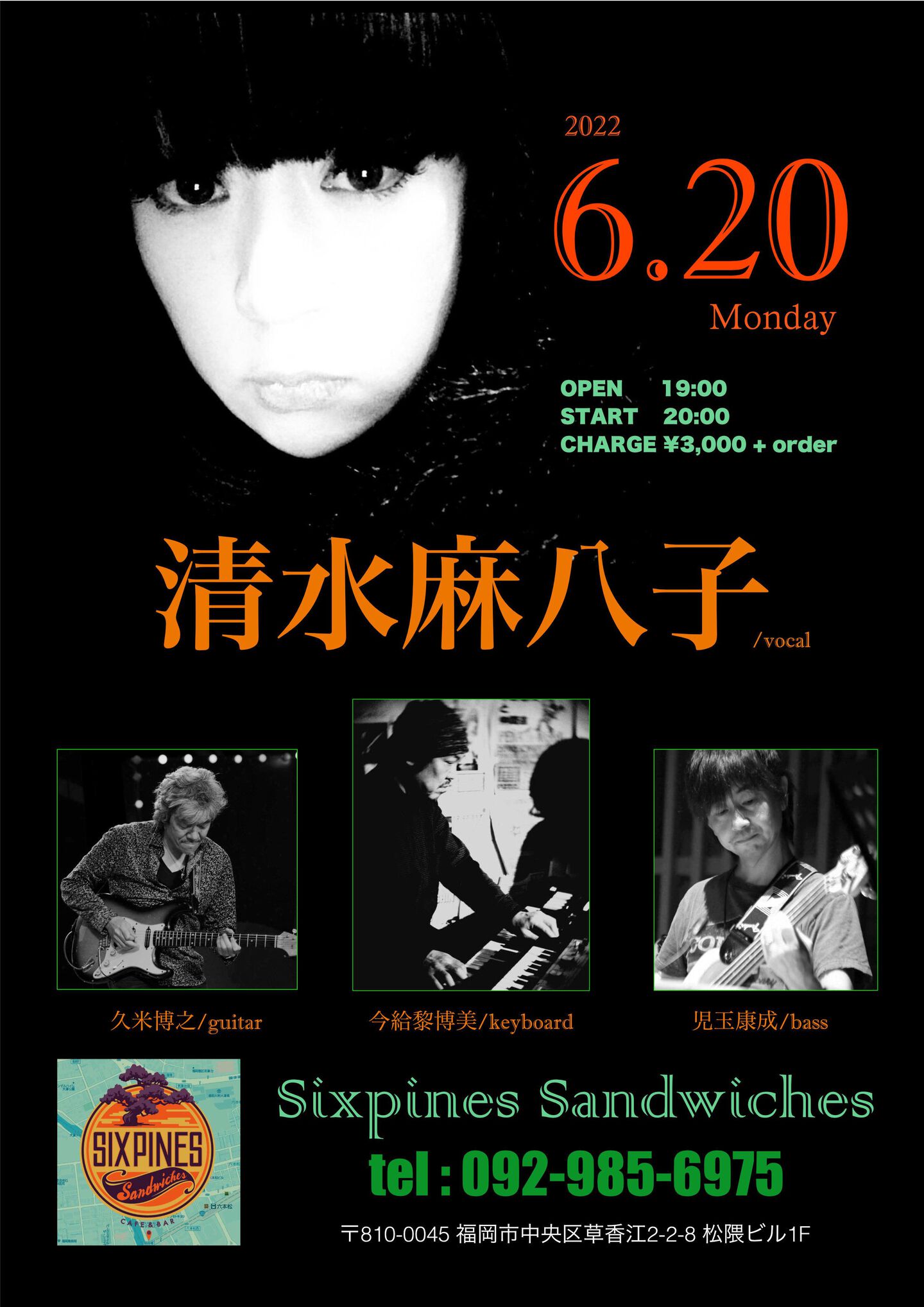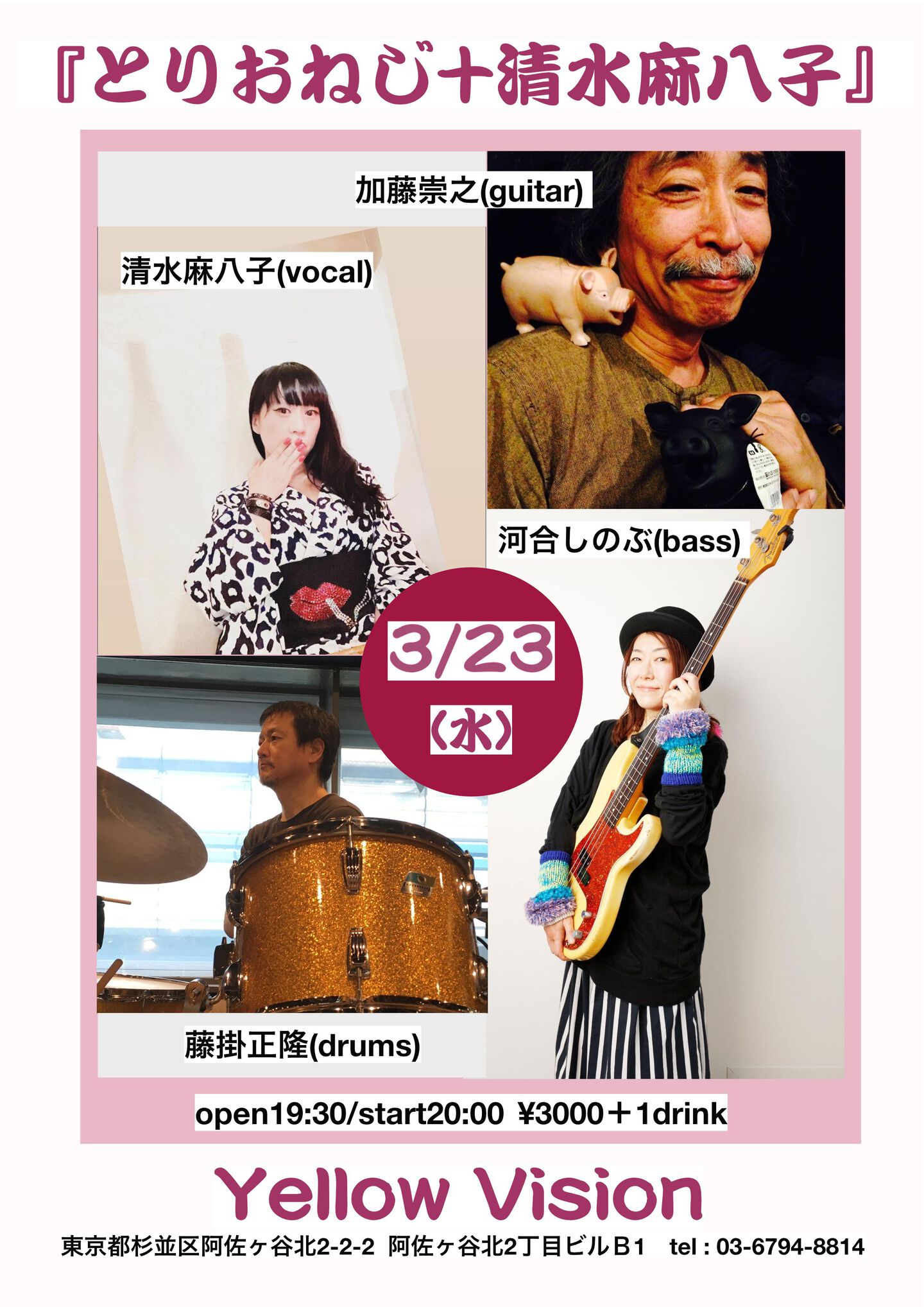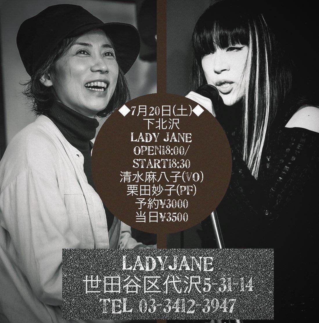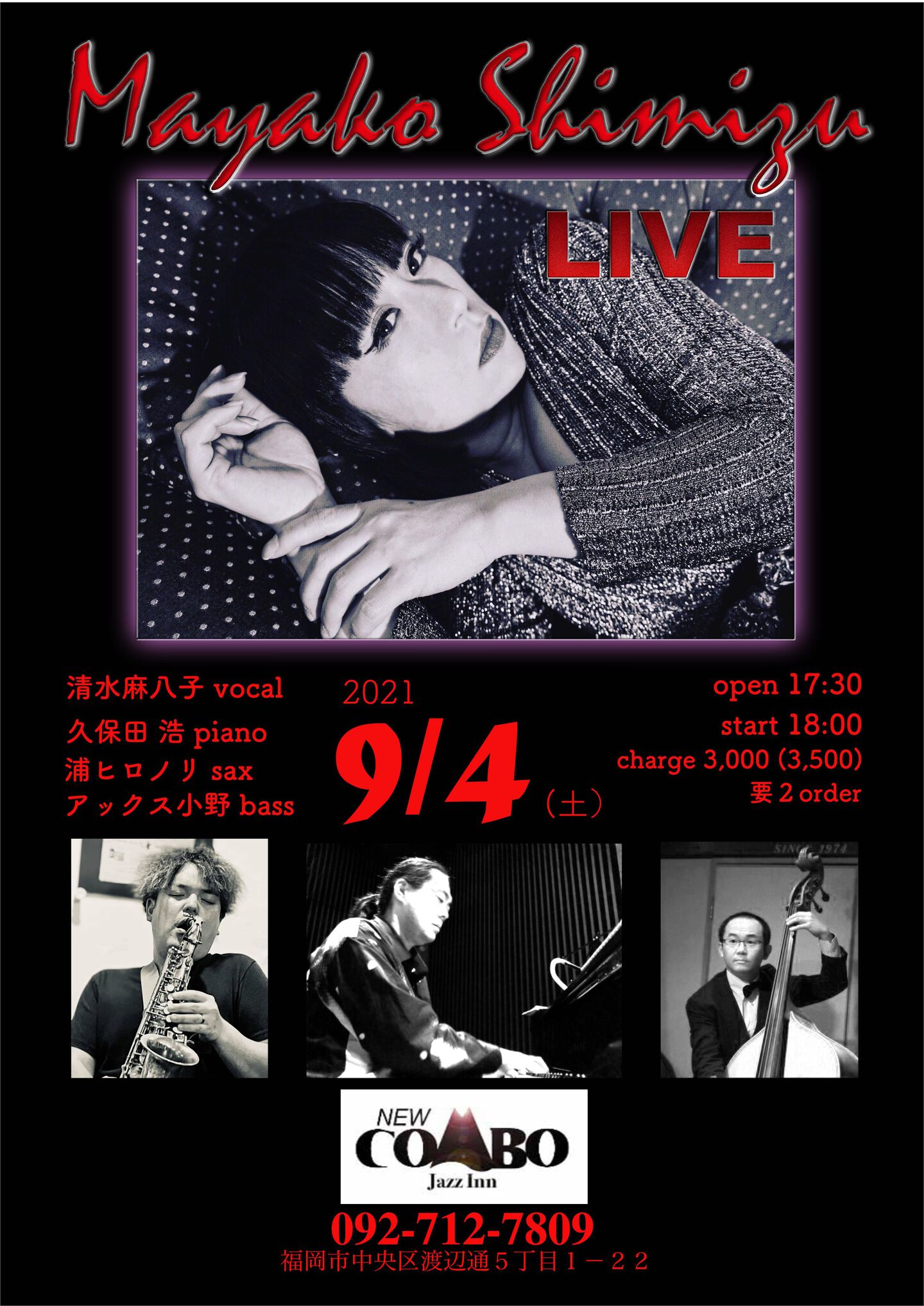 開場:19:00 開演:20:00 前売¥3,000 当日¥3,500 (要1drink 1オーダー)