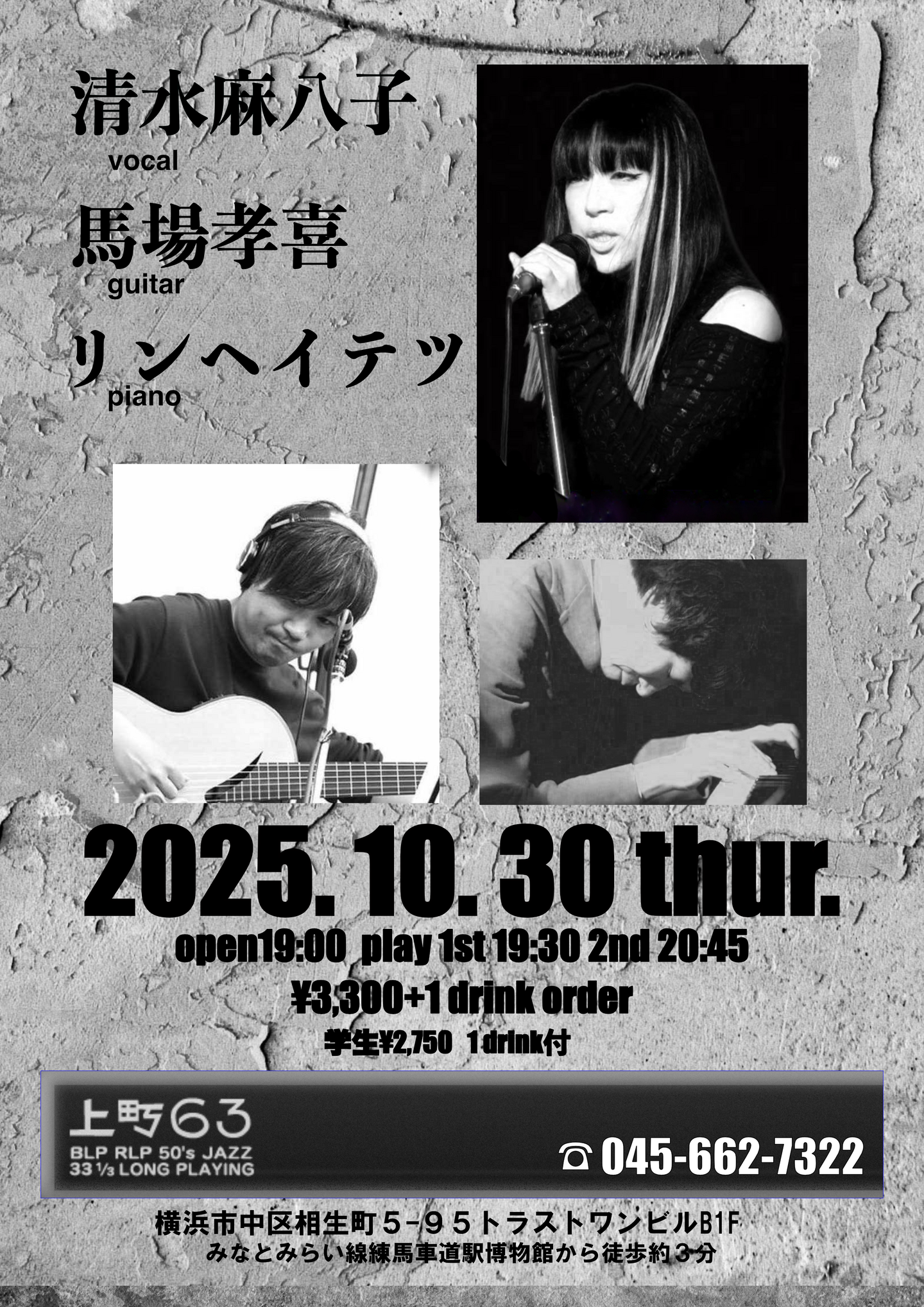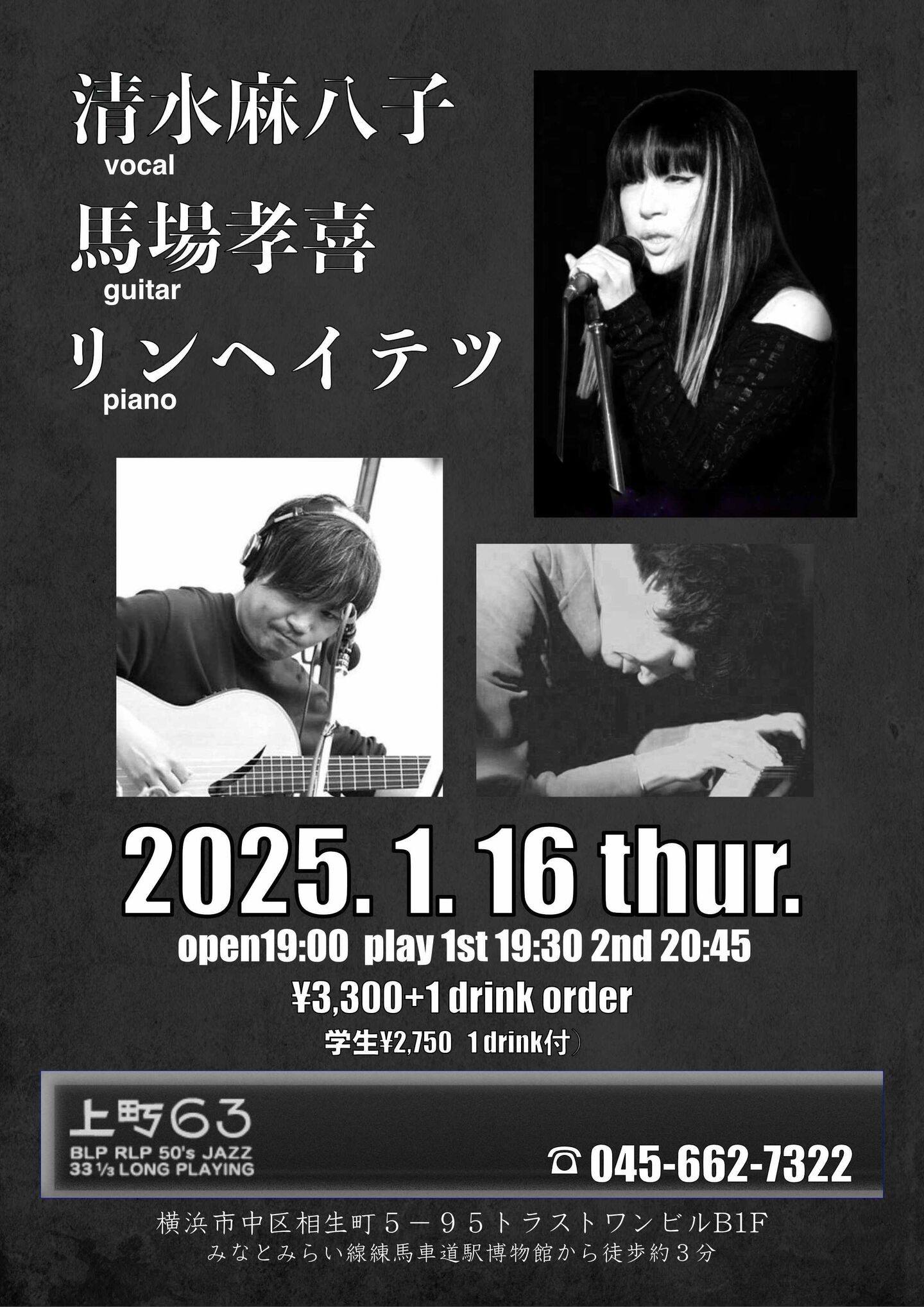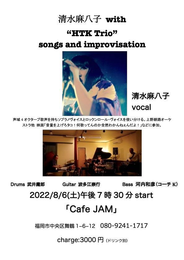清水麻八子(vo) + リンヘイテツ(pf) + 落合康介(b)