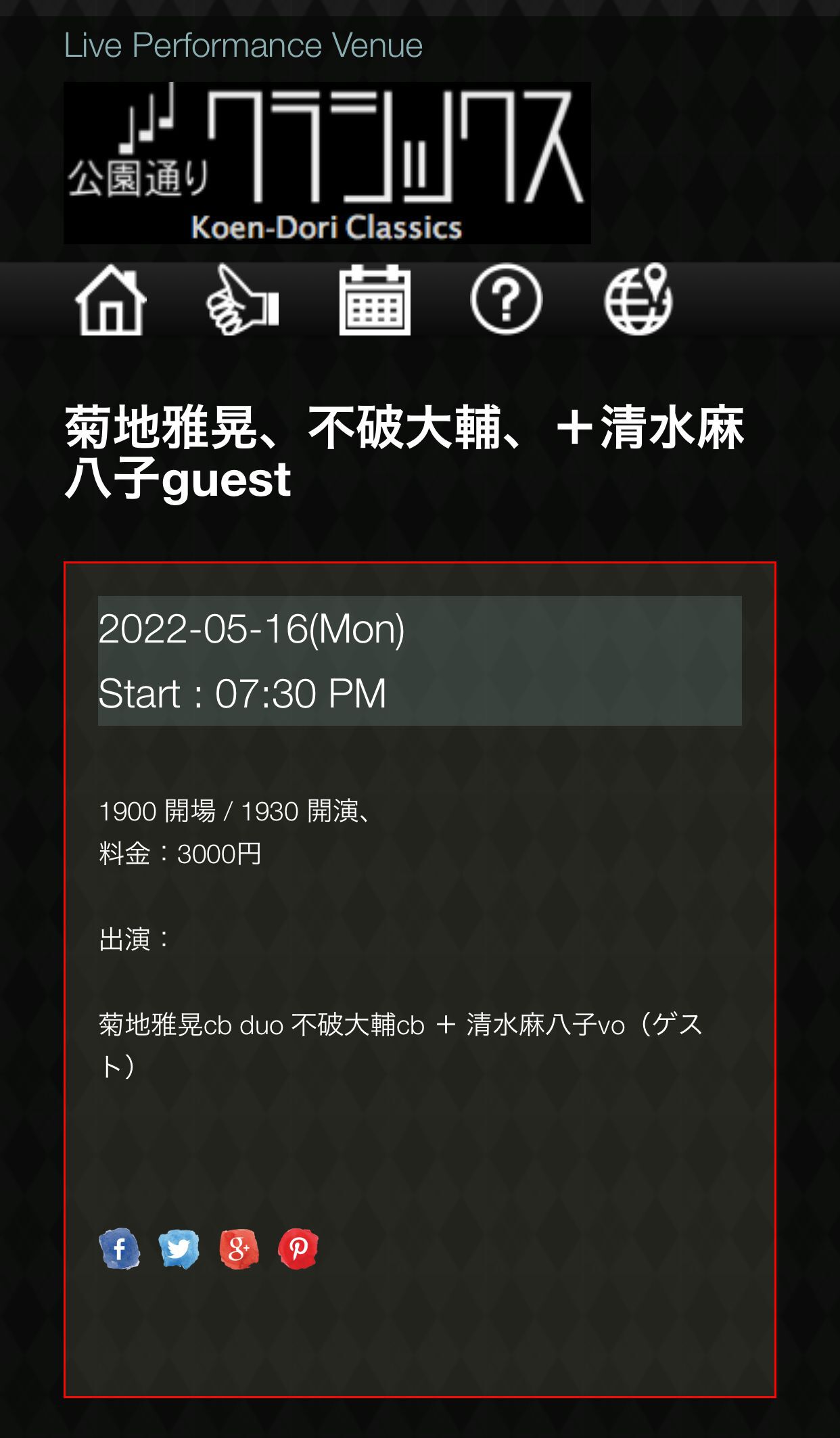 Open 18:30 /1st 19:30〜/2nd 21:00
