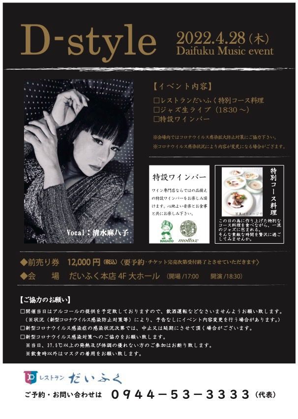 開場:18:00 開演:19:00 Charge¥2,500 (要オーダー)