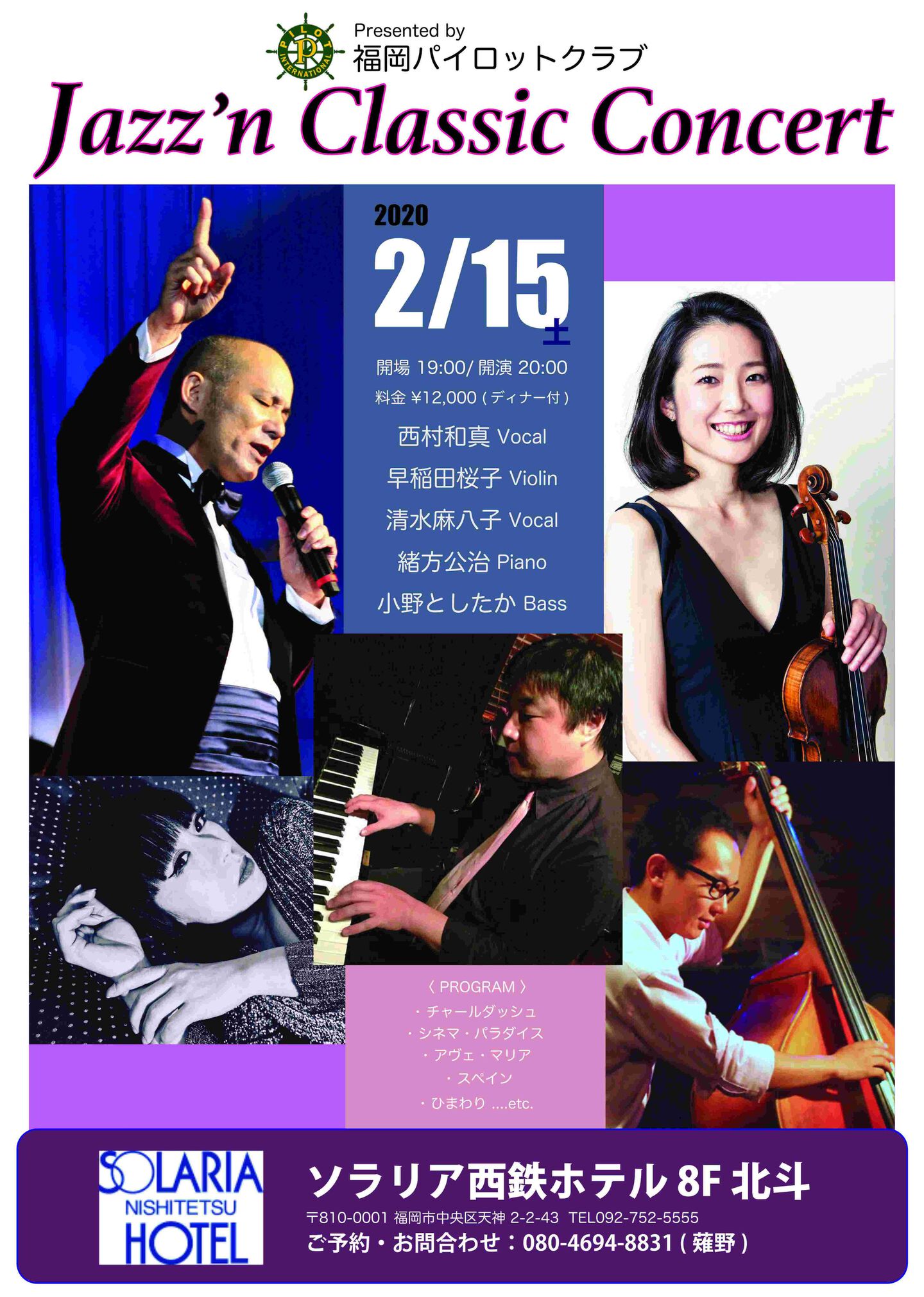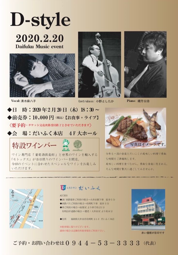 開場:19:00 開演:20:00 要予約¥12,000 (ディナー付)