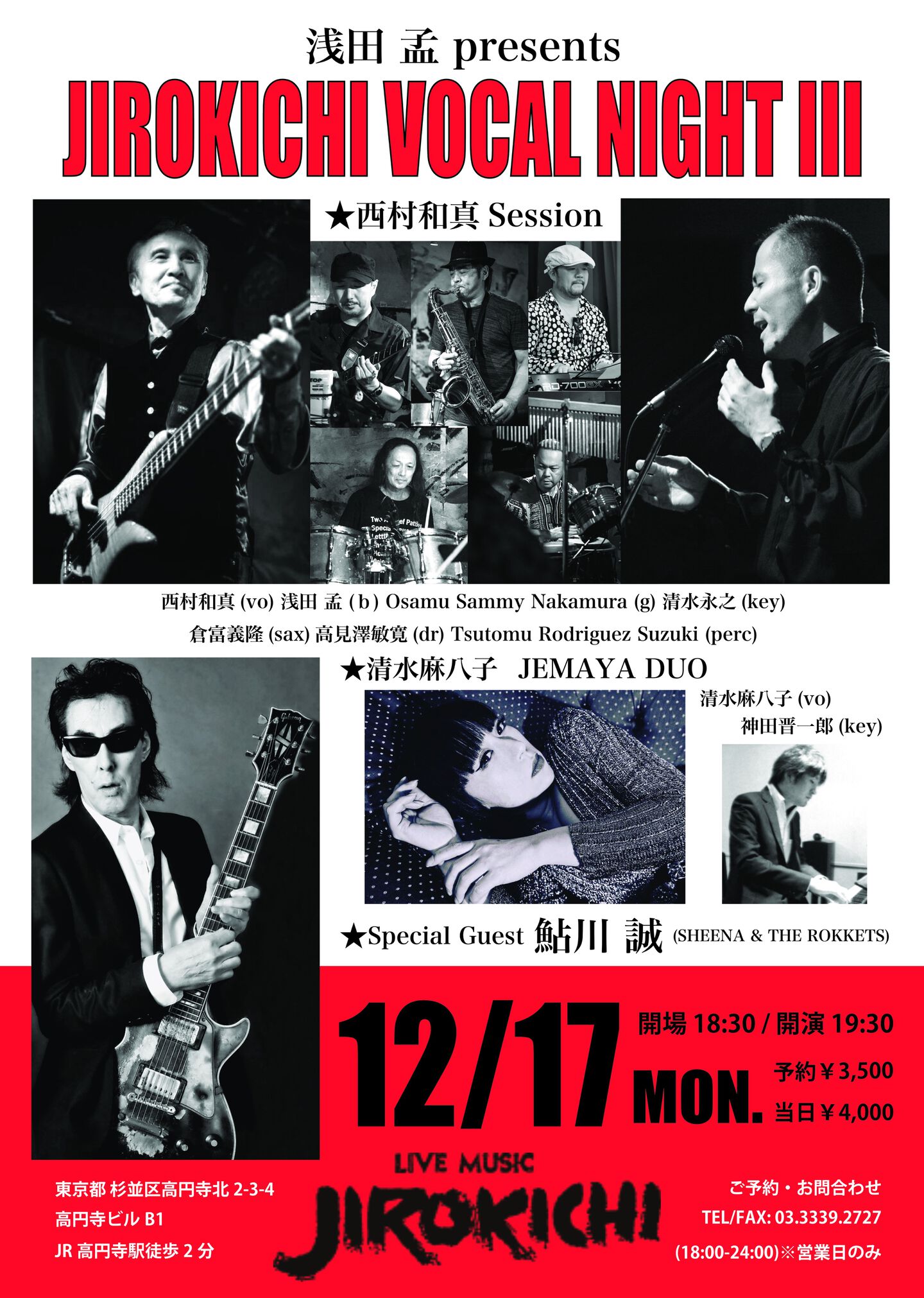 お問合わせ:03-3339-2727 Live Music JIROKICHI